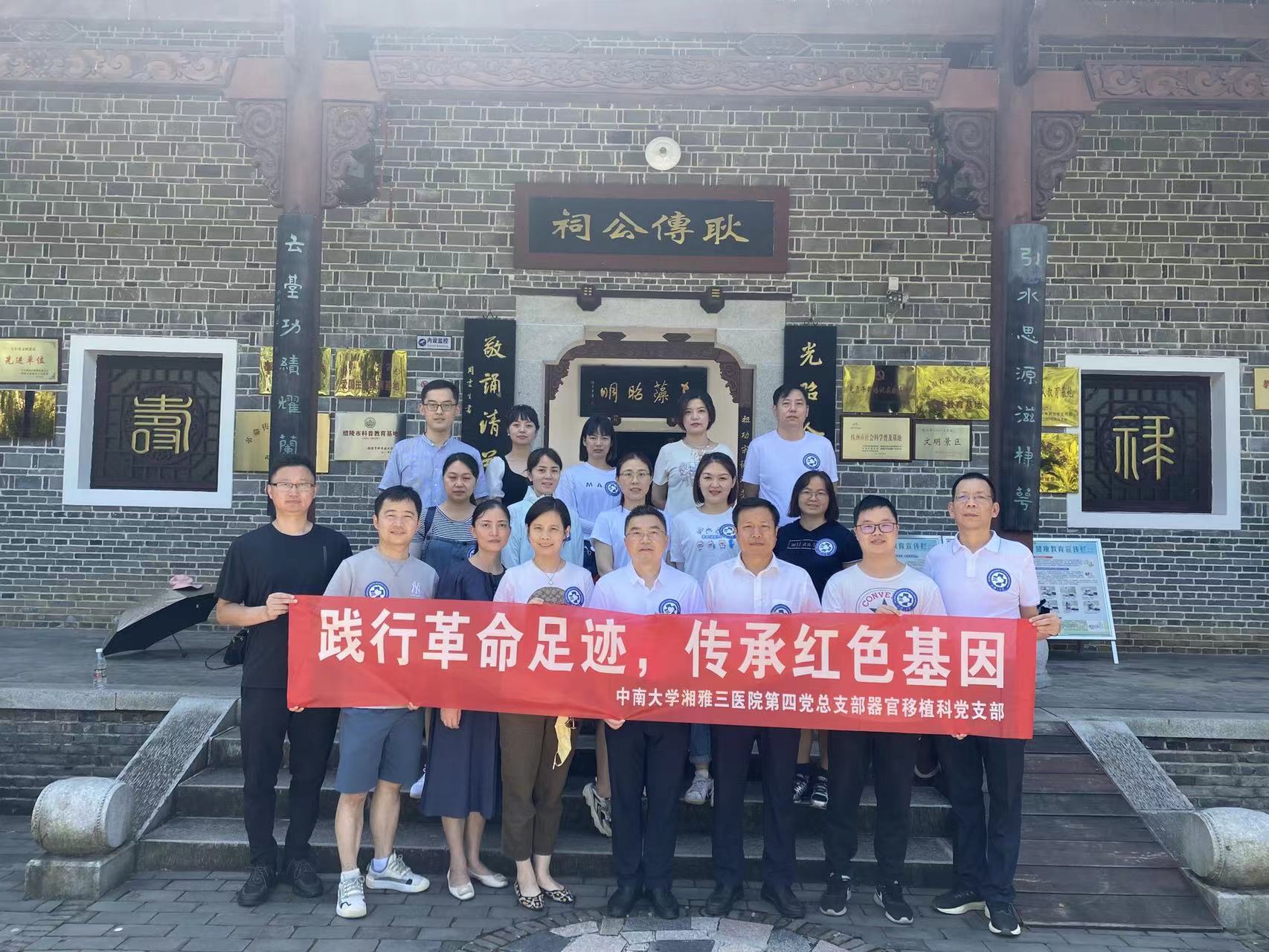 2022年7月23日,中南大学湘雅三医院第四党总支器官移植科血管外科组织支部党员,赴株洲参观耿飚故居、渌江书院,结合党史教育,开展“践行革命足迹,传承红色基因”主题党日活动。