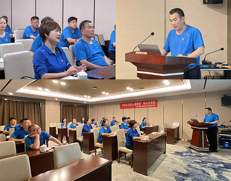 参观行程结束后,余枭书记为大家作“知党史,感初心,践使命”主题党课讲解,学习了习近平新时代中国特色社会主义思想,坚决做到两个维护,同时提高党性修养,把“不忘初心,牢记使命”作为加强党的建设的永恒课题。课后进行了非常生动有趣的党史知识抢答竞赛,党员以科室为单位分成“撸起袖子加油干”“不忘初心牢记使命”“同心喜迎二十大 奋勇前行跟党走”三组,各派出一名代表进行“石头剪刀布”比赛,胜出者则为所属小组赢得抢答权。大家学以致用,踊跃答题,收获满满。