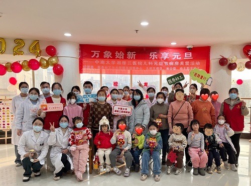 12月27日,在2024年元旦佳节即将到来之际,中南大学湘雅三医院儿科五病区携手院团委、医务社工与志愿服务指导中心、雅医社工、中大阳光社工、米公益,在北京微爱公益基金会、广州金丝带等爱心公益伙伴的大力支持下,从大病患儿的实际需求出发,策划开展“万象始新·乐享元旦”病房关爱活动,为寒冷的冬日增添一抹温暖的色彩。