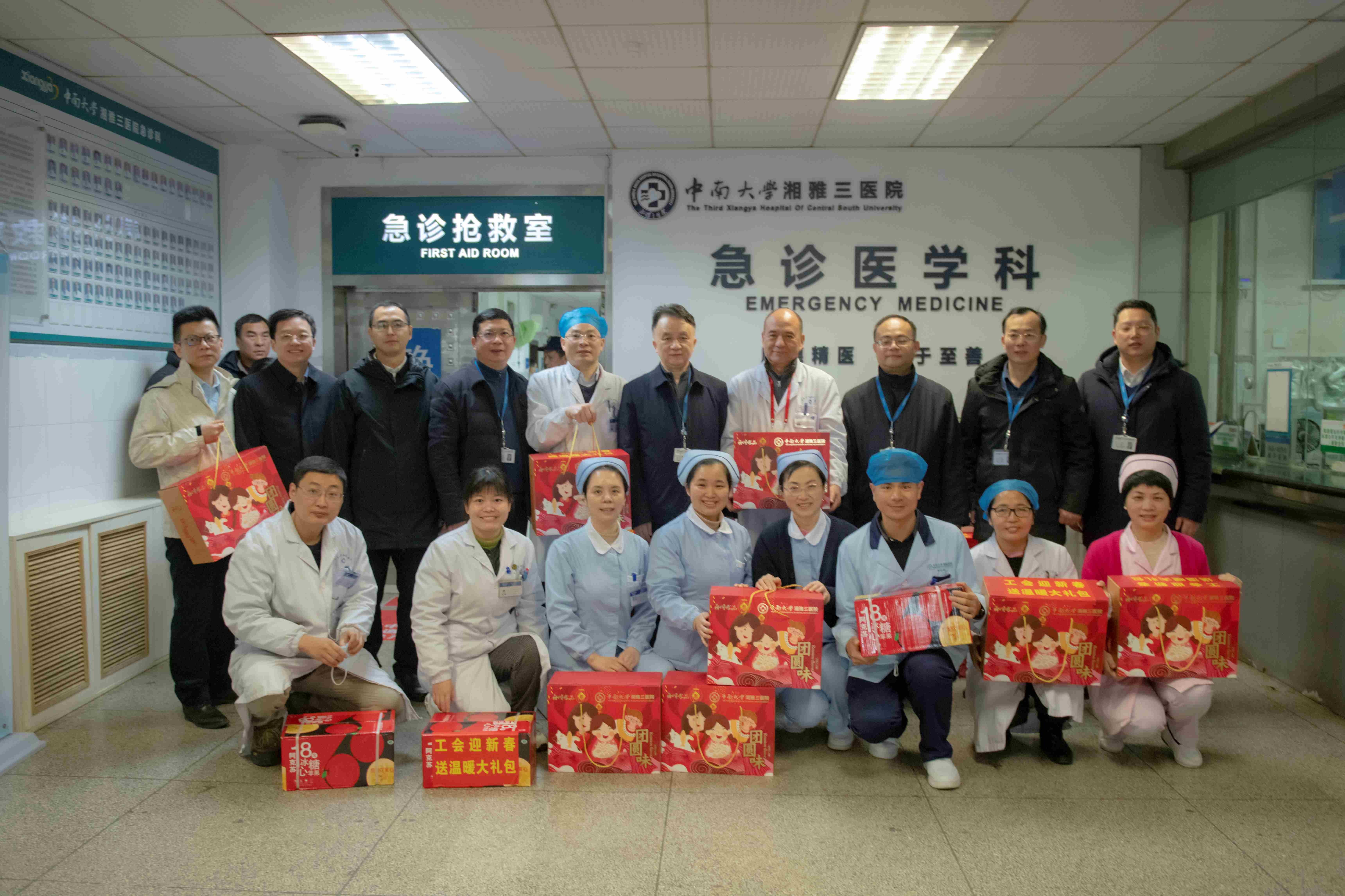 隆冬透寒意,慰问暖人心。2月7日上午,在新春佳节来临之际,中南大学湘雅三医院党委书记何庆南,党委副书记、院长江泓,党委副书记、工会主席杨飞龙,党委委员、总会计师费云,副院长孙传政等院领导带领党委办公室、医院办公室、工会以及各党总支等慰问组成员深入春节期间有一线值班任务的90余个临床、后勤工会小组进行“迎新春送温暖”走访慰问,提前向坚守一线,保障医院优质运行的教职工拜年,并送上新春祝福和“工会关爱礼包”。