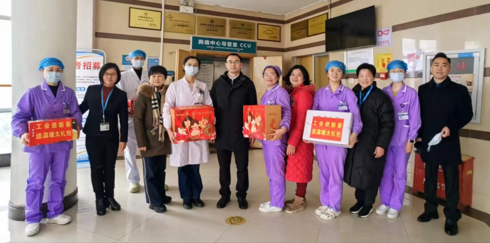 在新春佳节到来之际,院工会除开展“迎新春送温暖”之走访慰问春节期间有一线值班任务的临床、后勤工会小组活动外,还开展了系列慰问活动,对先进模范、先进工作者,临床一线职工代表,以及因重大疾病、突发事件等原因造成生活困难的教职工等进行看望慰问,切实履行工会职责,全力做好关心关爱工作。