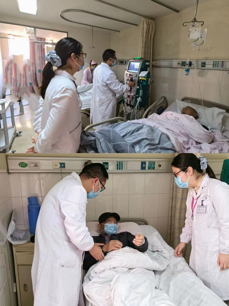 “爱”的交接。有一种责任,叫我一直都在,有一种担当,叫医者的坚守。科室全体医护陪患者的时间超过了家人,却始终甘之如饴。大年二十九,肾病风湿病科10病室和38病室整合为一个科室,38病室承担起过年期间接诊、诊疗危重患者任务。合科之后,科主任张浩带领医护人员查看危重患者,制定详细诊疗计划,确保过年期间患者生命安全。张浩指示,要配备血滤机、呼吸机等仪器 ,保证急诊病人进入病房得到及时救治。KICU已运行两个月,救治危重患者技术逐渐成熟,大年初一,KICU迎来成立以来首次“大考”,四台床床旁血滤治疗,三台双重血浆置换治疗,治疗量是平常工作的三倍,医护人员坚守岗位,以点点萤火微光,汇聚起了照亮生命的璀璨星河。