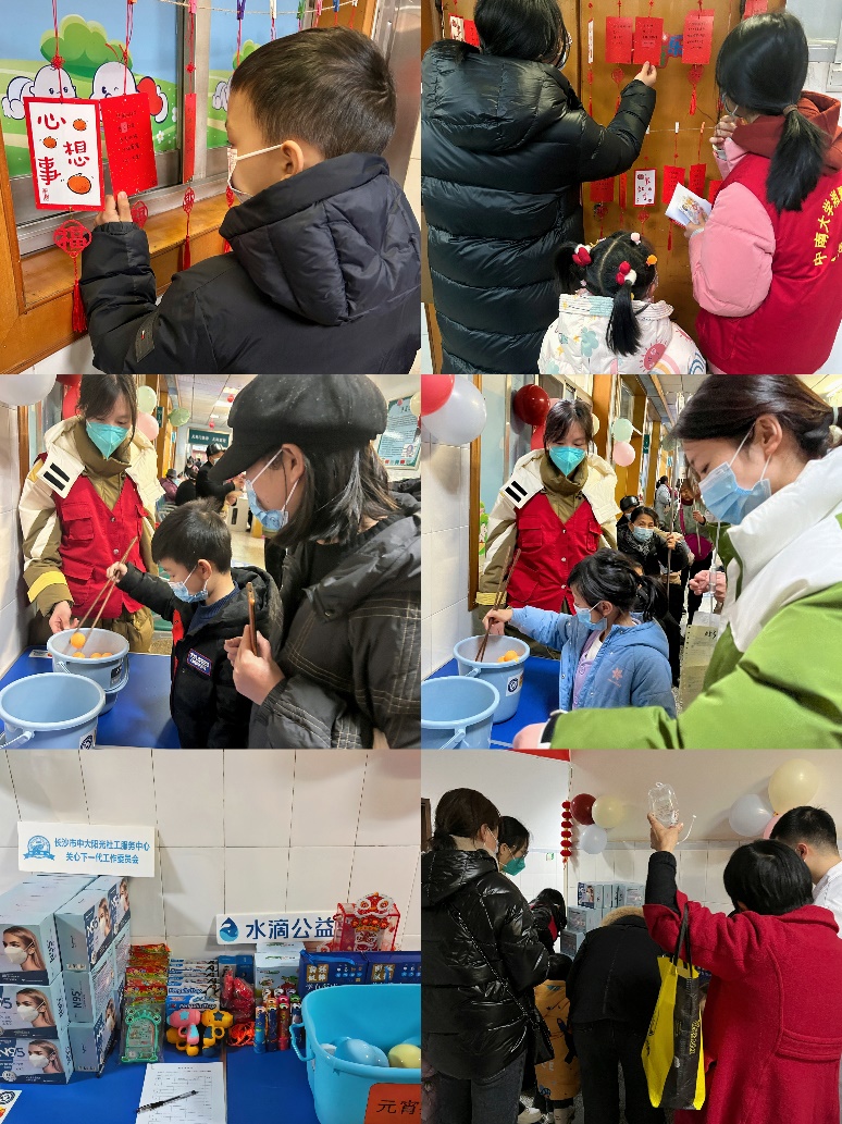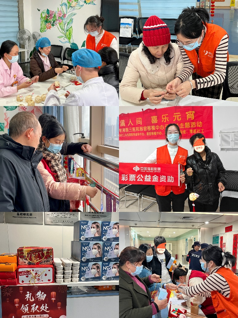 天上月圆人团圆,家庭美满心事圆,好运连连能逢圆,幸福祥和尽欢颜。元宵佳节即将到来之际,为丰富病友住院生活,营造祥和喜乐的节日氛围,2月21日至22日,中南大学湘雅三医院团委(志愿服务与医务社工办)联合雅医社工、中大阳光社工,在水滴公益、中国福利彩票公益金的大力支持下,先后在儿科门急诊、器官移植中心开展了系列迎元宵、庆佳节主题活动。儿科门急诊护士长刘海燕、三十六病区护士长刘佳,驻点医务社工及志愿者、部分医护人员、患者及家属共百余人参加活动。