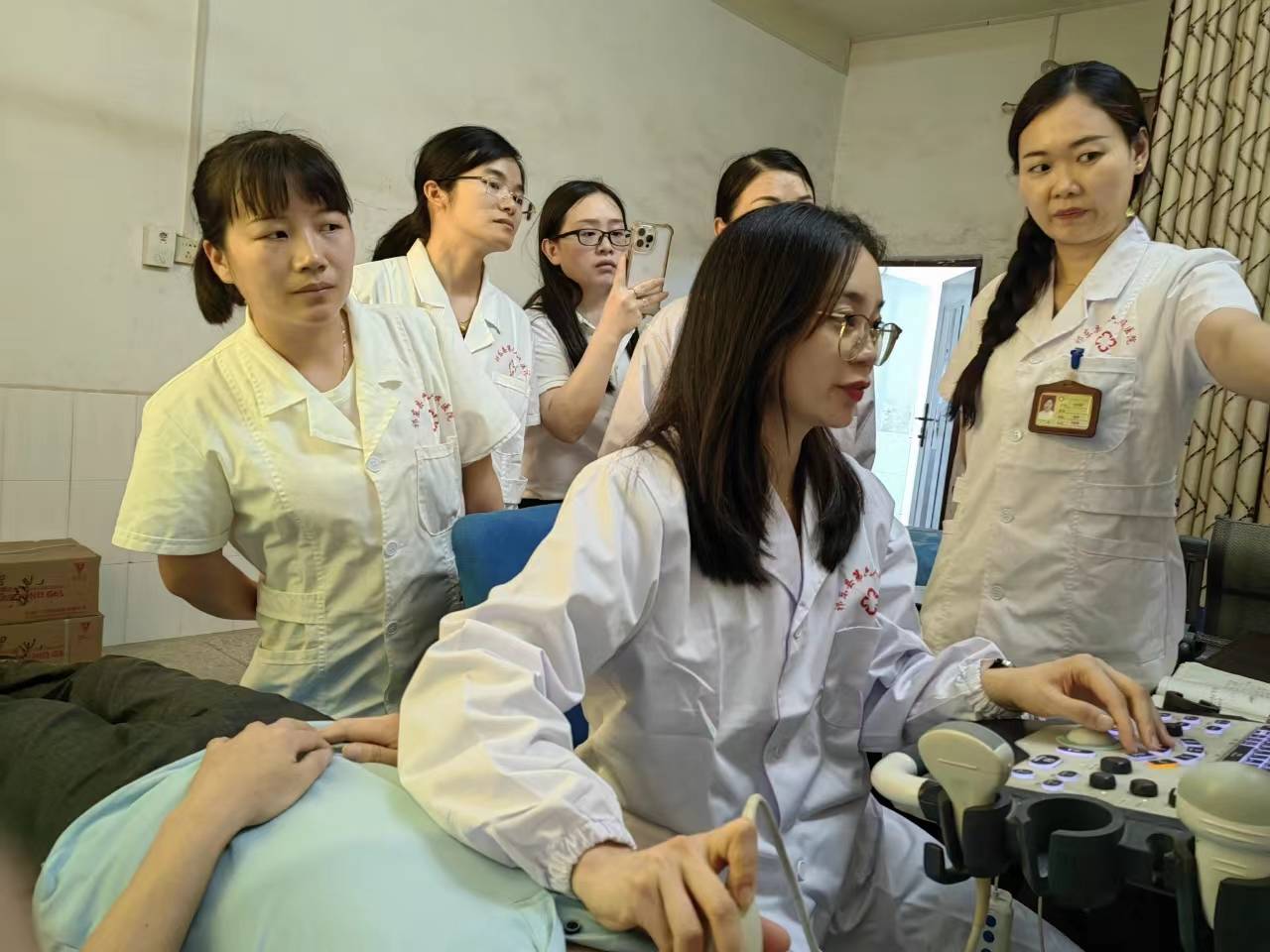 为了把医疗服务带到边远乡镇,陈妮妮、吴金泽驱车70多公里来到祁东卫健系统第六人民医院,给医务人员和当地乡村医师进行疾病诊治知识培训和适宜技术指导。陈妮妮针对当地医院在超声诊断技术及慢病管理服务的薄弱环节,进行现场帮教指导,详细讲解了甲状腺、乳腺结节的影像学分级方法和血管超声的诊断技术等,让受培医务人员印象深刻。吴金泽则为当地医生进行了《脑卒中筛查及基层诊疗指南》解读,深入浅出地介绍了脑卒中的诊断、筛查、预防、疗法等。讲座结束后,吴医生还积极互动,答疑解惑,获得了热烈掌声,大家纷纷表示受益匪浅。
