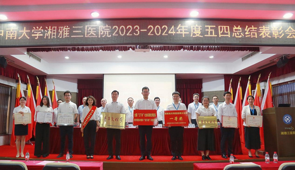 党委副书记、纪委书记张劲强宣读了《关于表彰2023-2024年度共青团工作先进集体、优秀个人的决定》。过去一年里,新湘雅青年紧紧围绕党政中心工作,积极贡献青春力量,取得了优异成绩,获得系列共青团荣誉表彰。泌尿外科获评“全国青年文明号”,一支团队荣获全国“三下乡”社会实践优秀团队暨共青团乡村振兴“笃行计划”示范性团队,院团委获评湖南省共青团团课大比武一等奖、湖南省志愿服务项目大赛金奖,妇科、神经内科、罗佩佩、何金深荣获长沙市及中南大学青年文明号、青年岗位能手等,共获国家级、省市级荣誉15项,校级荣誉47项。随后,全体院领导为获奖集体和个人代表颁奖。