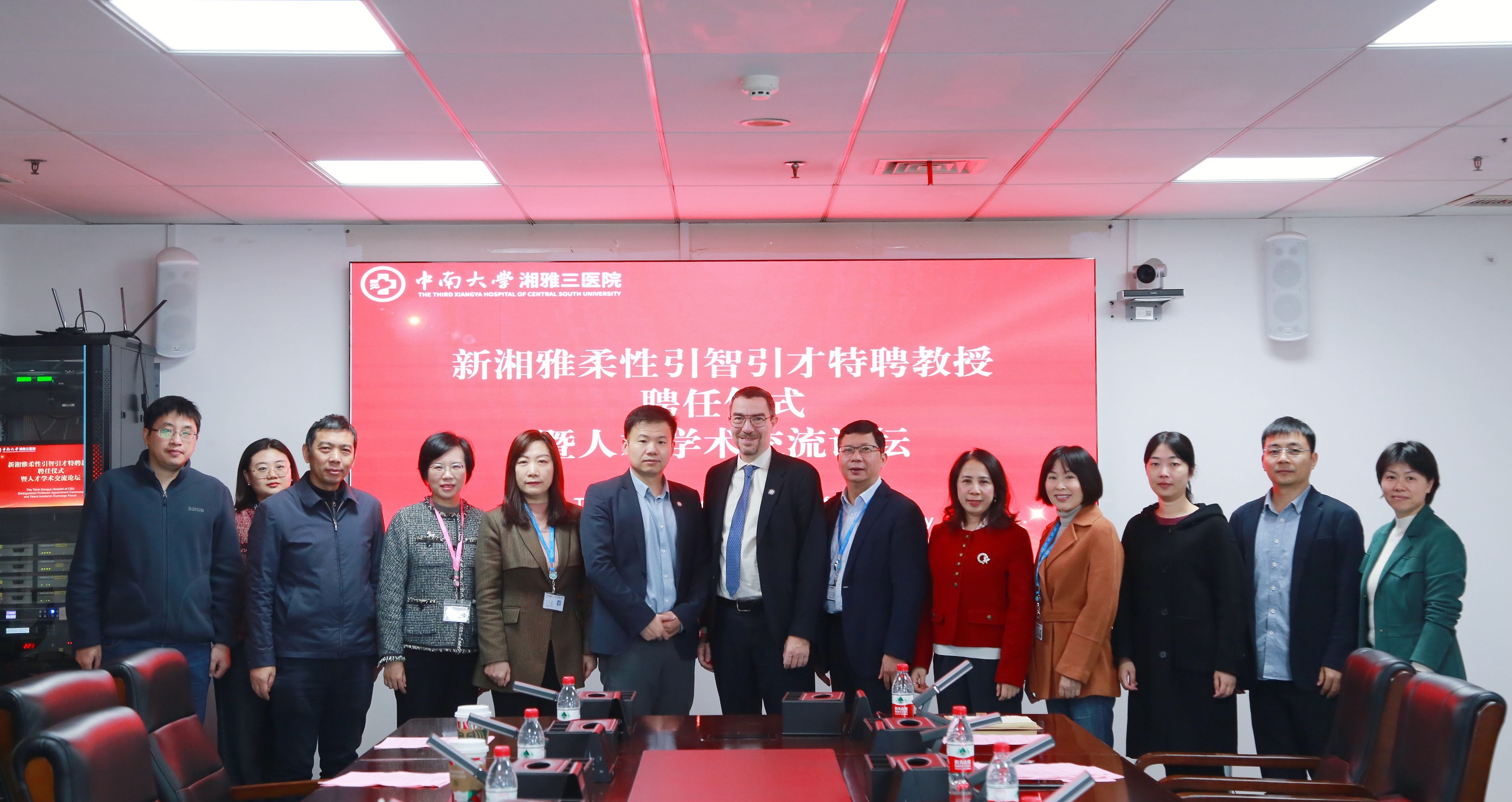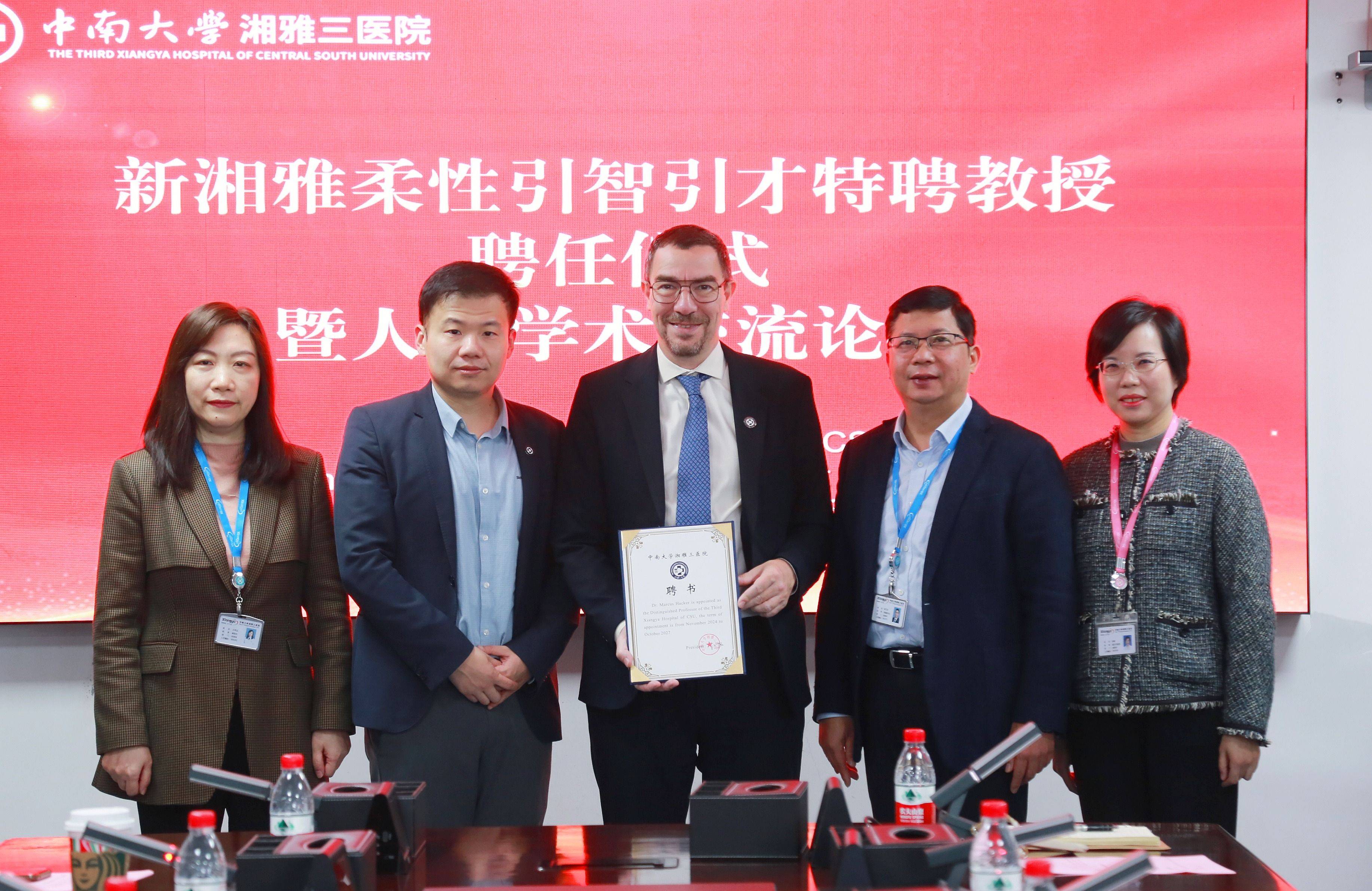 11月21日上午,中南大学湘雅三医院在外科楼19楼会议室举行了特聘教授聘任仪式,聘任国际知名核医学专家、维也纳医科大学Marcus Hacker教授为医院“柔性引智引才计划”特聘教授。维也纳医科大学李翔教授,湘雅三医院党委副书记杨飞龙、副院长左笑丛出席,核医学科、放射科、泌尿外科、人力资源部、国际交流与合作办公室、学科建设与规划办公室、研究生部、教务部等相关部门负责人参加聘任仪式。仪式由人力资源部主任刘新春主持。