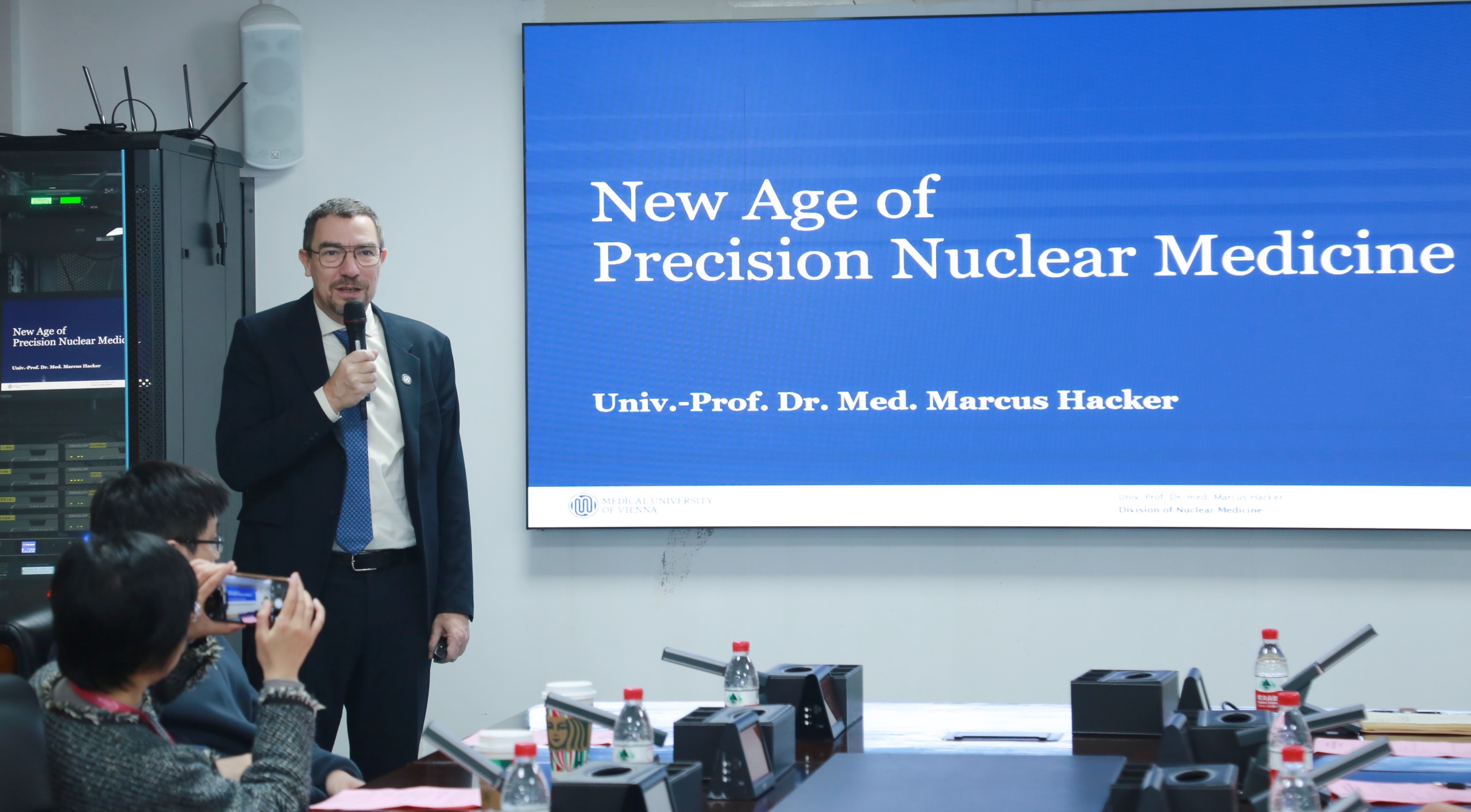 左笑丛对Hacker教授的来访表示热烈的欢迎。她说,今年年初何庆南书记带队访问维也纳医科大学、维也纳总医院期间,参观了医学影像与治疗系和核医学科,并与维也纳医科大学签署了合作框架。维也纳医科大学核医学部专家也多次来院开展国际学术交流,就如何助推核医学学科建设与国际接轨进行了深入交流。她相信,在“柔性引智引才计划”的支持下,双方在核医学诊疗一体化领域将合作往纵深推进。