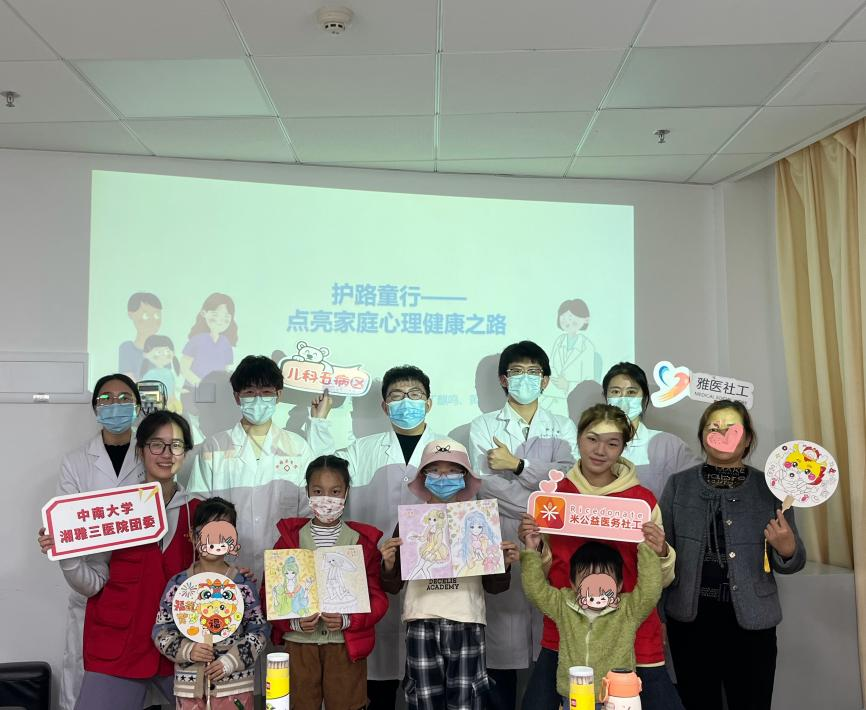 11月21日下午,中南大学湘雅三医院儿科五病区联合医院团委(社志办)、湘雅护理学院谷灿教授团队、雅医社工、湖南第一师范学院青年志愿者协会在内科楼七楼示教室共同开展了“护路童行”心理健康教育活动。本次活动旨在关注血液肿瘤患儿家庭的心理健康,帮助患儿及家属走出心理阴影,提升心理韧性,助力患儿更好地配合疾病治疗和恢复。