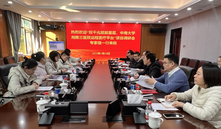 1月10日上午,工业和信息化部通信司网络发展处王泽珏处长、中国信息通信研究院黄涂半特、郝倩玉高级工程师、中国人口与发展研究中心张佳莉高级工程师、湖南省卫健委规划发展与信息化处黄跃斌副处长、湖南省通信管理局信息通信发展处肖余平处长等一行6人来院,对由中南大学湘雅三医院与联通(湖南)产业互联网有限公司联合申报的工业和信息化部、国家卫健委“宽带网络+健康乡村”应用试点项目“双千兆赋能基层,中南大学湘雅三医院远程医疗平台”进行调研。调研会由孙传政副院长主持。