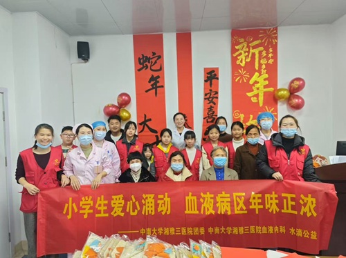 为弘扬中华传统文化,传递社会关爱,营造温馨的节日氛围,1月23日(农历腊月二十四),中南大学湘雅三医院血液内科联合院团委与公益组织,在41病区举行了“温暖新春,爱心相伴”新春血液病病友关爱活动。此次活动旨在通过丰富的节日互动,为血液内科住院病友及其家属带去一份特殊的节日慰问,让他们在这个春节感受到医院的温暖与关怀。