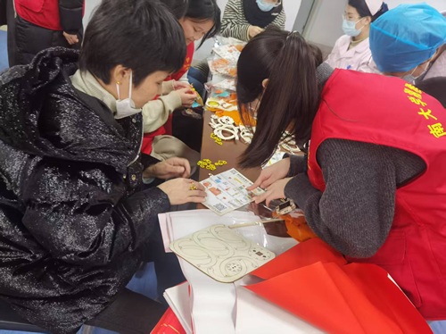 活动的另一部分是DIY制作新年灯笼,现场气氛欢快而温馨。血液科的医护人员带领病友及家属一起动手制作灯笼,大家用缝制的方式完成了一个个小巧精致的手工灯笼,寓意着新的一年如灯笼般光明、温暖。参与的病友纷纷表示,手工制作不仅带来了乐趣,还在忙碌的治疗过程中为他们带来一丝轻松与快乐。