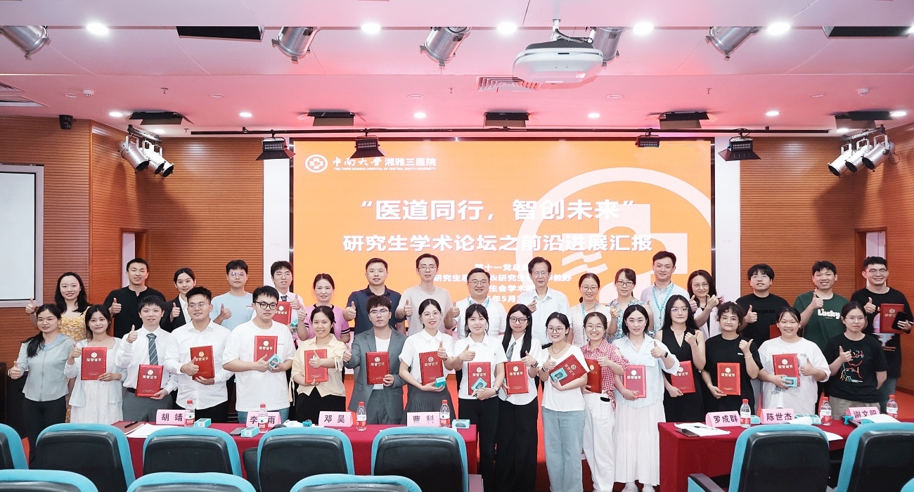 5月22日下午,由湘雅三医院第十一党总支、研究生思政部、研究生部、毕教办主办,研究生会学术部承办的“医道同行·智创未来”研究生学术论坛前沿进展汇报,在外科楼2楼学术报告厅举行。本次活动特别聚焦“学科交叉+党建”融合工作机制,各学生党支部选派1支研究生队伍参赛,并由党建班导师担任指导老师,以党建引领学术方向。活动吸引了全院研究生与住培学员踊跃参与,展现了青年医学者的创新风采与科研活力。
