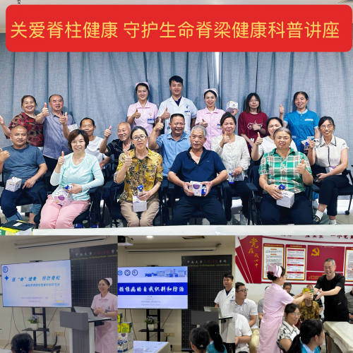 活动期间,脊柱外科还特别安排了科普知识讲座,为病友提供全方位的健康指导。脊柱外科王莹护士长以《强脊健骨预防骨质疏松》为题,通过生动有趣的讲解,向中老年患者普及骨质疏松预防知识,帮助大家树立科学防治理念。刘仁峰医师以《颈椎病的自我识别与防治》为切入点,向患者及家属详细介绍了颈椎病的居家防护和治疗方法,强调科学预防和干预的重要性。医生通俗易懂的讲解让患者及家属不仅知其然,更知其所以然,有效提高了疾病预防意识。