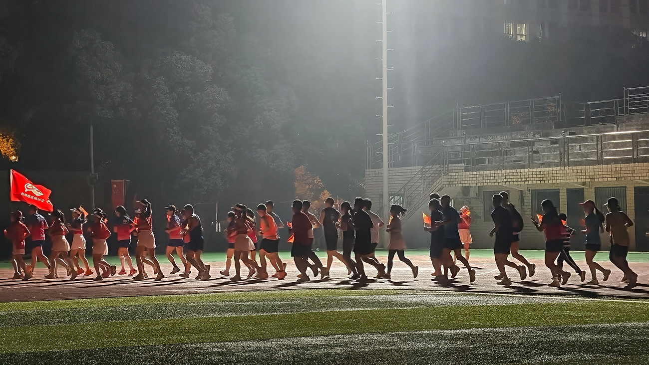 19时许,参与活动的职工会员们统一身着健跑协会团服,沿着运动场的跑道有序前进。他们步伐矫健,精神饱满,手中的国旗随风舞动,成为操场上一道亮丽的风景线。对于长期奋战在工作一线的教职工而言,参与跑步锻炼不仅是保持身心健康、积蓄工作能量的有效途径,更是展现严谨工作之外青春活力的别样舞台。许多参与者表示,通过协会组织的规律性锻炼,不仅有效缓解了工作压力,提升了身体素质,更以饱满的精神状态重返岗位,实现了“快乐工作,健康生活”的良性互动,为持续提供高质量的医疗服务注入了源源不断的活力。