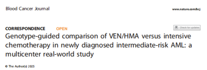 近日,中南大学湘雅三医院血液内科李昕教授团队在国际权威血液肿瘤期刊《Blood Cancer Journal》(血癌杂志,中国科学院一区,IF=11.6)发表研究,题为“Genotype-guided comparison of VEN/HMA versus intensive chemotherapy in newly diagnosed intermediate-risk AML: a multicenter real-world study”(基因分型指导下,维奈克拉联合去甲基化药物与强化化疗在新诊断中危急性髓系白血病中的比较:一项多中心真实世界研究)。该研究首次在真实世界背景下,系统比较了两种治疗方案——维奈克拉联合去甲基化药物(VEN/HMA) 与传统强化疗(IC),在初诊中危急性髓系白血病(AML)患者中的疗效与安全性。研究还从基因分型角度分析了不同突变类型患者的治疗反应,为推动“以基因为导向”的个体化治疗策略提供了新依据。李昕教授为论文独立通讯作者,陈欣博士为第一作者,湘雅三医院为第一作者与通讯作者单位。