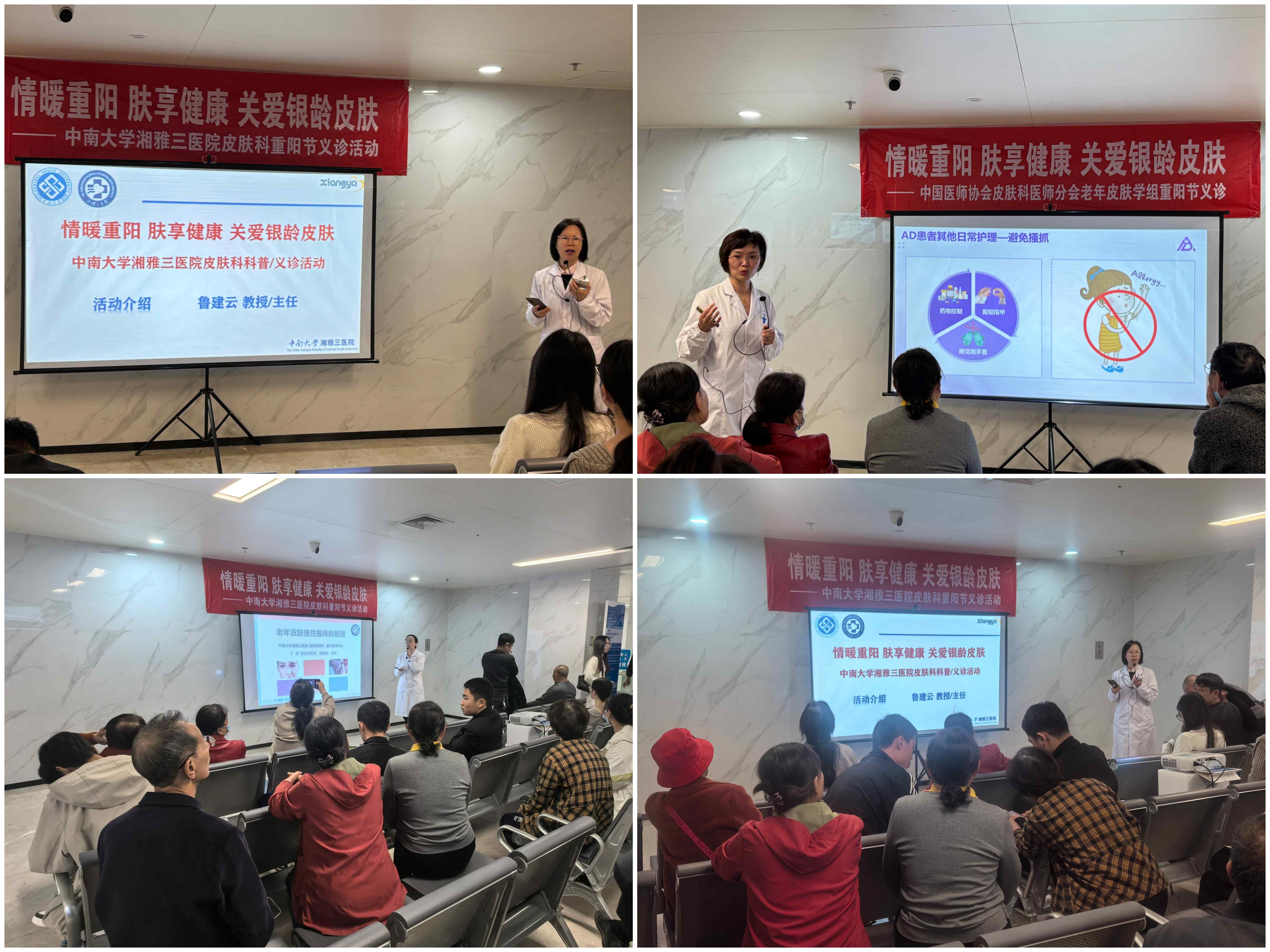 10月28日,中南大学湘雅三医院皮肤科在医院门诊楼8楼开展“情暖重阳,肤享健康”关爱银龄皮肤健康公益科普讲座和义诊活动。