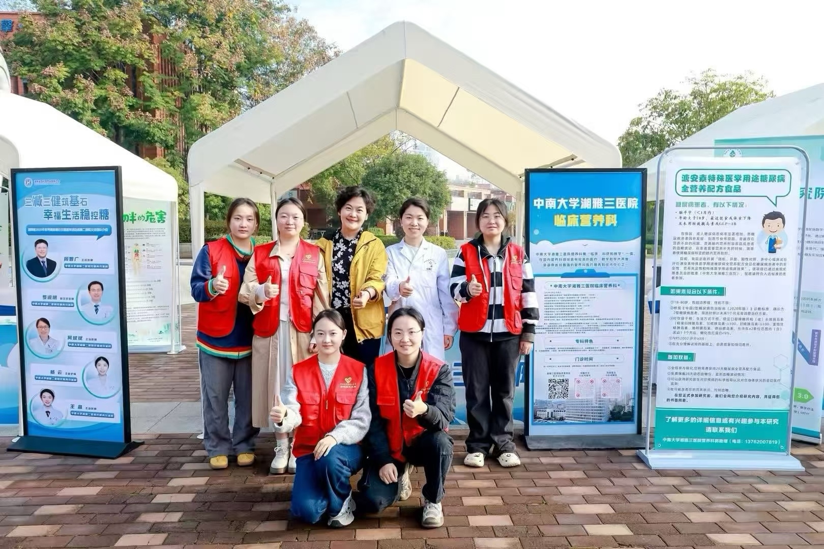 11月16日,以“糖尿病与幸福感——三减三健筑基石,幸福生活稳控糖”为主题的2025湖南省世界糖尿病日主题宣传活动在长沙湘江新区西湖公园举办。本次活动由湖南省卫生健康委指导,中部地区·区域性营养创新平台(湖南省国民营养创新联合会)主办。湘雅三医院临床营养科受邀参加,临床营养科主任刘敏携主治医师刘红和实习同学组建专业团队圆满完成了现场义诊与健康咨询任务。