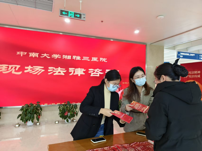 12月4日,中南大学湘雅三医院开展“学习宣传贯彻习近平法治思想,推动宪法深入人心”主题的宪法宣传系列活动。