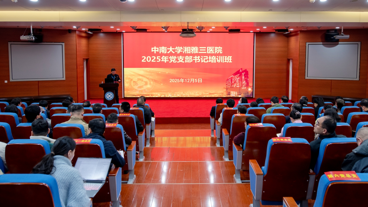 2025年12月5日上午,中南大学湘雅三医院在外科楼二楼学术报告厅举办中南大学湘雅三医院2025年党支部书记培训班。本次培训以“锤炼过硬本领、筑牢战斗堡垒”为主题,旨在深入学习贯彻党的创新理论,全面提升党总支书记、党支部书记的履职能力,为医院高质量发展提供坚强组织保障。培训班由医院党委副书记杨飞龙主持,全院各党总支书记、党支部书记参加培训。