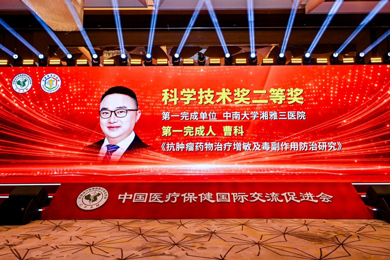 12月20日,2025年度华夏医学科技奖颁奖大会在北京举行。中南大学湘雅三医院曹科教授团队主持完成的《抗肿瘤药物治疗增敏及毒副作用防治研究》项目,荣获华夏医学科技奖科学技术奖二等奖。