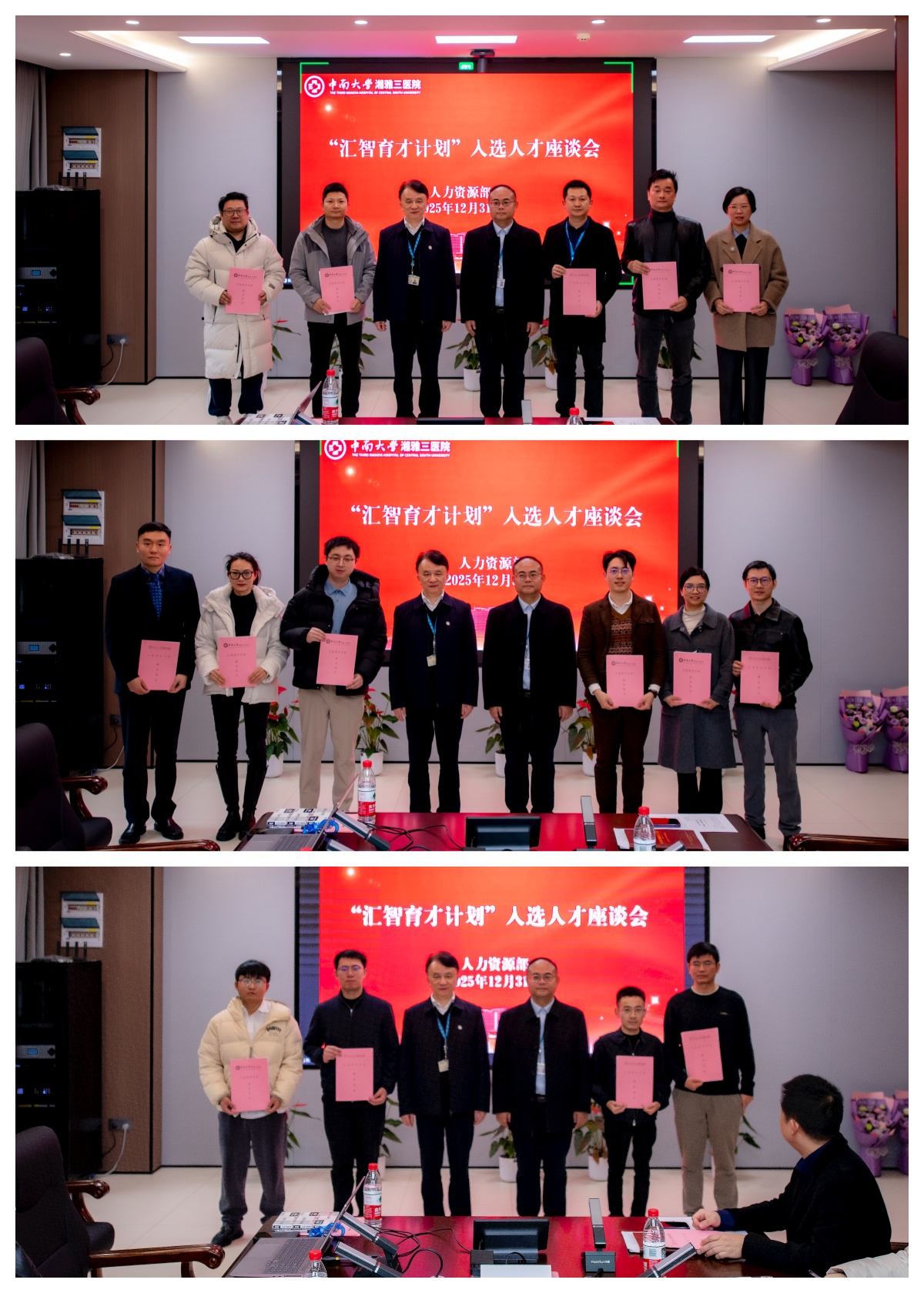 12月31日上午,中南大学湘雅三医院“汇智育才计划”入选人才座谈会在外科楼二楼远程会议室举行。医院党委书记何庆南,院长江泓出席会议,医院“汇智育才计划”入选人才、相关职能部门负责人、人力资源部工作人员参会。会议由副院长曹科主持。