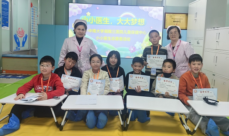 近日,中南大学湘雅三医院儿童保健中心举办2026年第一期“小小医生志愿者”社会实践活动,旨在通过寓教于乐的方式,帮助孩子们学会关注自身健康指标,培养健康意识,养成良好的生活习惯,激发对医学的兴趣。