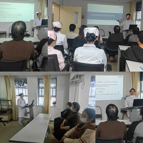 结合儿科血液肿瘤护理重点,实习学生立足专业所长,在带教护士指导下同步开展家属健康宣教,围绕甲氨蝶呤、环磷酰胺、培门冬酶等常用化疗药物的护理要点与不良反应观察进行讲解,重点提示用药期间的护理、感染风险防护、异常情况的就医指征。宣教过程中,学生使用通俗语言,将所学知识转化为实用的临床服务能力,解答家属疑问,帮助家属掌握可操作的护理方法。