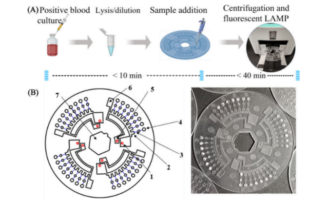 这款外形酷似CD唱片的芯片,将复杂的实验室检测流程浓缩于方寸之间。检测时,操作者仅需从已培养阳性的血培养样品中提取5微升样本进行裂解处理,再用移液器将60微升处理后的混合液注入芯片。随后将芯片置于特制离心机中,通过精确控速的离心步骤使样品均匀分布,再经过恒温孵育和便携式荧光检测仪读取结果,全程仅需50分钟。这种简便操作不仅缩短了样本周转时间,更能确保检测结果真实反映患者感染初期的细菌状态。