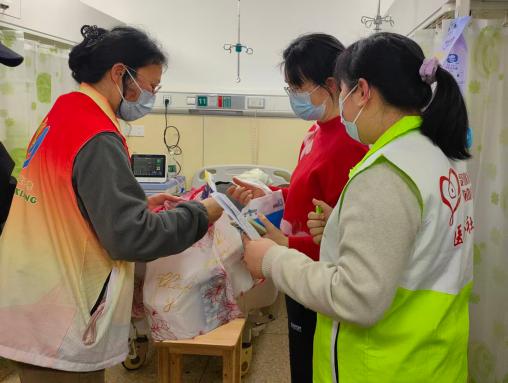 活动结束后,志愿者与医护人员走进病房,为因照顾孩子未能来到现场的妈妈们送上节日礼物,鼓励她们在照顾孩子的同时,也要关注自身的身心健康。