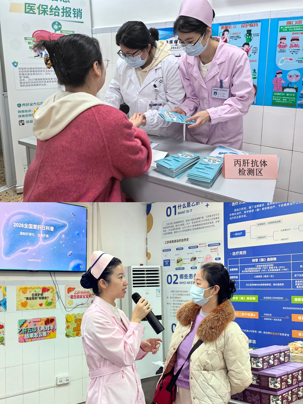 诊室内忙碌而有序,刘振国教授反复叮嘱抗病毒药物的规范用法,强调“不能吃吃停停”;张浩晔副教授细致查看脂肪肝患者的检测报告,从饮食搭配到运动频率,逐一给出个性化生活指导;诊室外的免费丙肝抗体检测点陆续有市民前来咨询检测,医护人员耐心地为每一位参与者采血、讲解检测意义,并针对检测结果提供初 步的健康指导。