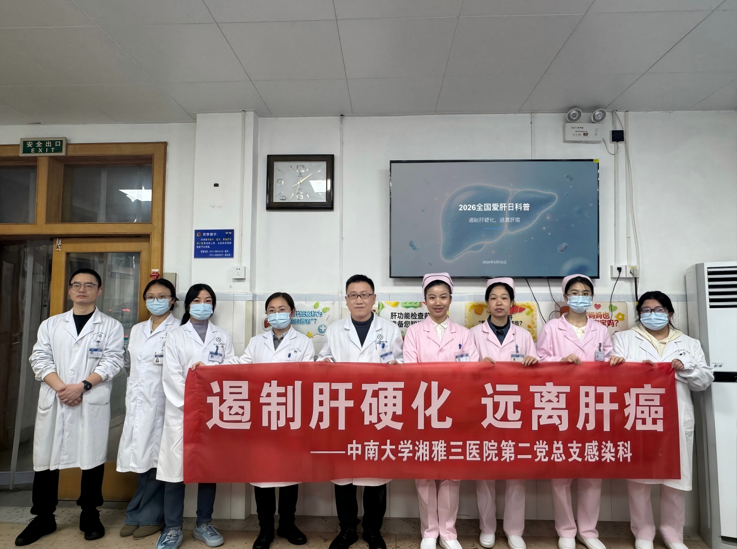 3月18日上午,中南大学湘雅三医院感染科门诊大厅里暖意融融,一场以“遏制肝硬化,远离肝癌”为主题的全国爱肝日科普公益活动正在这里温情上演。本次活动旨在提高公众对肝脏健康的重视,普及肝病防治知识,传递科学防治理念。活动由感染科护士长李秋艳主持,她以“肝脏是沉默的器官”为引,向在场候诊的患者和家属阐释了早期肝病筛查的重要性,并介绍了当天丰富的活动内容。