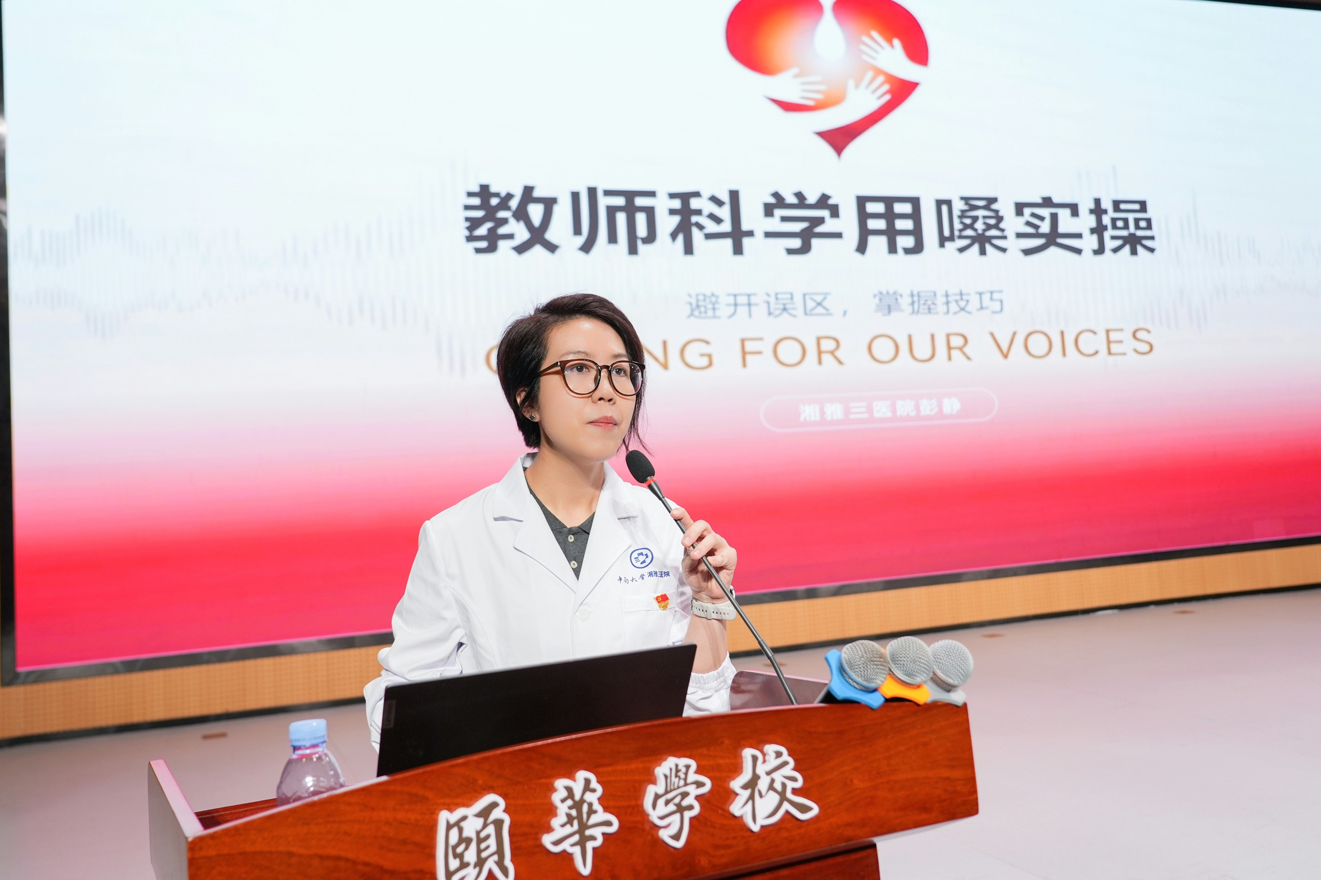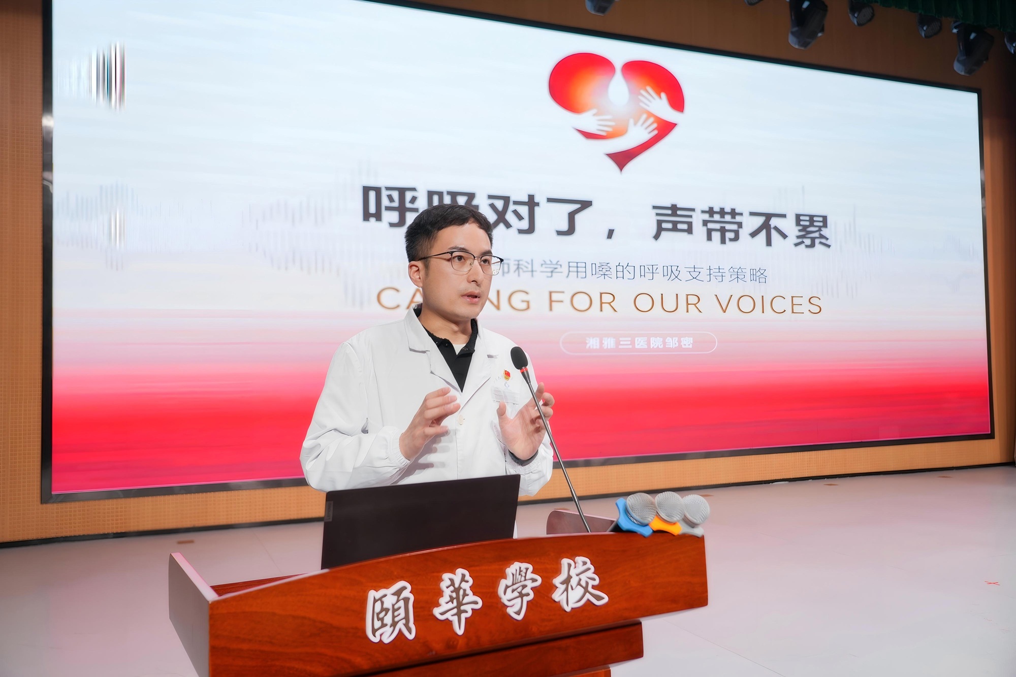 教师作为教育教学的中坚力量,因长期高强度用嗓,嗓音健康问题一直较为突出。来自湘雅三医院的医疗团队们通过深入浅出的讲解,为教职工们带来了一场全方位的“嗓音保卫战”。