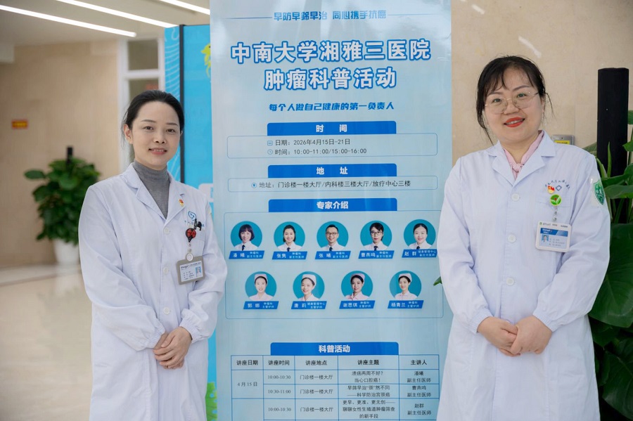 癌症预防与早筛早诊,是降低癌症发病率和死亡率的重要“利器”,也是当前防治体系中亟待夯实的关键环节。2026年4月16日,正值第32个“全国肿瘤防治宣传周”期间,中南大学湘雅三医院健康管理医学中心联合肿瘤科开展专项科普活动。中心副主任、妇科副教授赵群与主管护师唐莉分别带来两场精彩纷呈的专题科普讲座,助力防癌关口前移,以实际行动践行“早防早筛早治,同心携手抗癌”的主题理念。