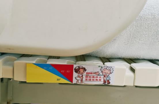 说干就干。护士们在每一张病床的床头侧栏,都张贴了彩色角度标尺——30°-45°提示可休息,45°-90°示意喂食服药安全区。患者入院时,责任护士手把手教家属对“标”调角度;日常巡视中,瞄一眼标尺就知道体位是否合规,不用再靠感觉估摸。