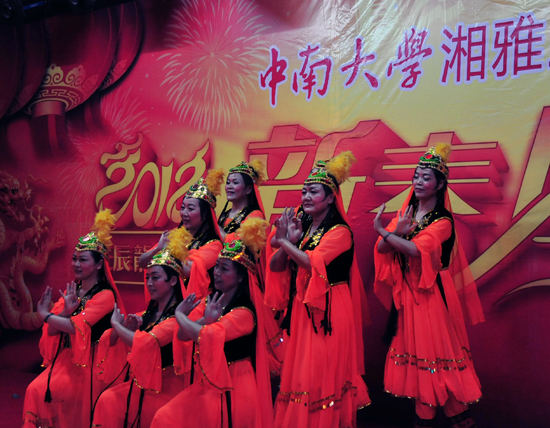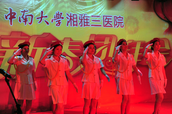 精彩纷呈的节目让现场的观众们大饱眼福:团委书记李姗领衔的开场歌伴舞《又唱浏阳河》既为大家带来了老歌的纯朴气息,也让大家体验了新时代的热情召唤;医疗美容中心准备的曲艺舞蹈秀,内容丰富、精彩纷呈,引得现场观众掌声不绝;来自神经内科的“军中女孩”为大家呈现出了三院女青年的青春与活力;由工会舞蹈队带来的《最美是新疆》展示出了医院“资深美女”的英姿风采;三句半《幸福三院》,则带领大家在笑声中回顾了医院一年来所取得的成就。