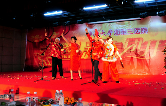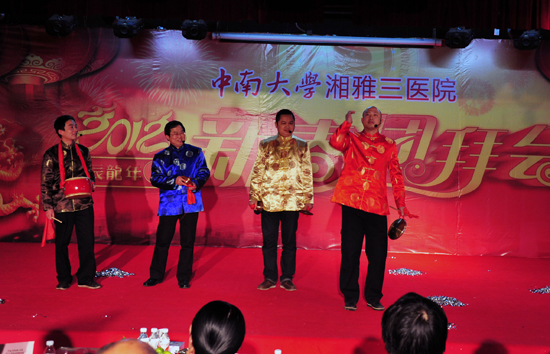 1月17日下午,湘雅三医院在健康管理中心科技沙龙隆重举行了2012年新春团拜会。医院全体在院院领导,历任院领导,离退休干部,各临床医技科室主任、护士长,中层管理干部,各党支部书记等共200余人欢聚一堂,辞旧迎新,共庆新春佳节。