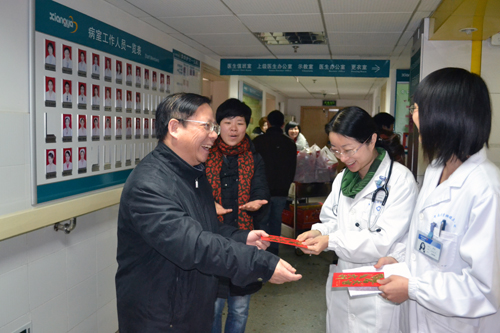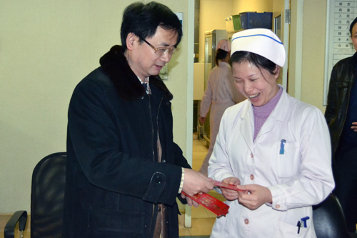 2月22日,农历壬辰龙年的大年初一,一大早,院领导陈方平、袁洪、黄进华、黄飞舟。与相关职能部门负责人,亲切慰问春节期间值班的职工,并探望部分住院病人,为他们送来医院党委和行政的关怀,向他们送上新春的祝福和问候,并祝大家新春快乐,万事如意。