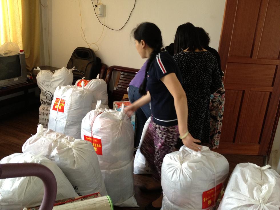 三天之内,几百本书、一千多份礼品、篮球、羽毛球拍等购回来了;电脑、打印机、dvd购回了;新办公桌椅、新书柜提前送至学校了;离退休人员捐赠的衣物、玩具、爱心款全部募集,宣传横幅制作好了。紧接着,分类、装袋、装箱、打包、登记、计划、联系……各就各位,一周之内,几十个统一规格的崭新的编织袋漂漂亮亮打完包并贴上统一制作的通红的爱心标志,从捐赠现场回院,我回头看看我的姐妹们:姜主任一脸憔悴,杨建叔膝关节疼痛走路一拐一拐,齐正辉血压升高、头晕站不稳、医生嘱咐做磁共振检查,肖正杰因打包绳令手上青紫得一触就钻心的痛,我真不忍心看;刘梦春虽年轻并新调入离退休办,但做事干净利索,除加班完成所有文字资料外,哪里需要就往哪里去,工作得到大家的认同。