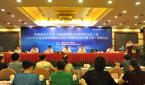 6月20—21日,湖南省贯彻落实卫生部《抗菌药物临床应用管理办法》暨《2012年湖南省抗菌药物临床应用专项整治活动》培训会议在神农大酒店举行。卫生部医政司医疗处副处长付文豪,中国医院协会药事管理专业委员会主任委员颜青,湖南省卫生厅医政处处长高纪平、副处长李世忠、曾清,湘雅三医院党委书记罗爱静、副院长袁洪,院长助理范自力等领导出席了会议开幕式。来自全省各级医院的院长,医务、药剂、检验、院感、质控等科室负责人及业务骨干500余人参加了集中培训。此次培训由湖南省卫生厅医政处主办、中南大学湘雅三医院承办。