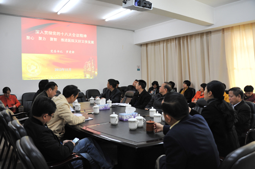 院领导邓云龙、黄飞舟、袁洪、朱晒红、郑治及相关部门负责人胡平安、郑乐知、郭新程等相继发言,结合医疗卫生行业特点和医院院情,结合自身工作实践,就怎样贯彻落实党的十八大精神,推动医院科学发展,提出很好的建议和思路。