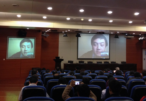12月20日下午,一场别开生面的党员大会在外科楼学术报告厅如期举行,来自第二党支部87名党员聚集一堂,为两名预备党员召开了一场较为特殊的预备党员转正大会,运用网络视频召开越洋转正会议。会议由支部书记方俏茜主持。