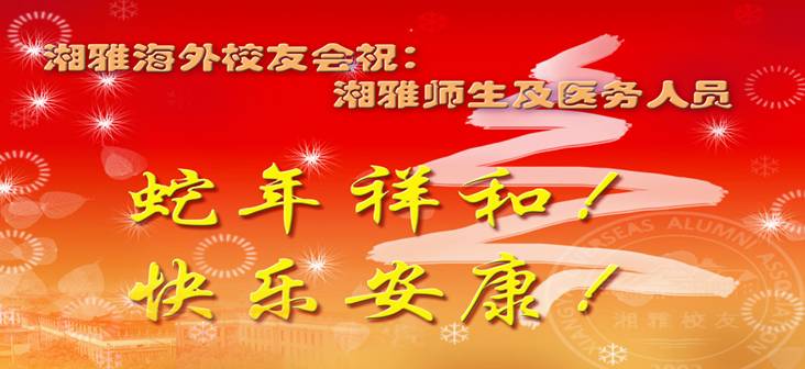 值此新年之际,我们谨代表湘雅海外校友会(Xiangya Overseas Alumni Association)向您们致以最诚挚的问候。祝您们及家人在新的一年里身体健康,心情愉快,学习及工作硕果累累。