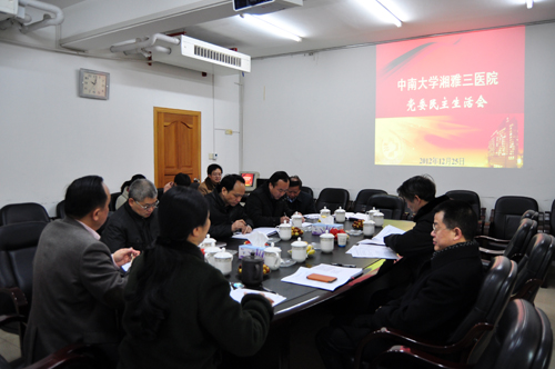 中南大学党委常委、组织部部长韩清波充分肯定了湘雅三医院民主生活会准备工作充分,广泛征求意见,主题鲜明,氛围浓厚,创新性地把去年和今年民主生活会征求的意见进行了比较,提出了客观、理性、合理化的建议,医院的风气越来越好,为以后的发展奠定了基础。他要求医院领导班子,要认真学习贯彻学校改革发展的精神,总结今年医院改革的措施和成绩,医院领导班子团结协作,使决策更加科学化和民主化,加强制度建设,切实改进作风。监察处处长廖济忠要求,湘雅三医院坚定不移地把团结发展作为头等大事,以人为本、保驾护航地抓学、抓实纪检工作,更加注重制度建设,切实落实好三重一大制度,推进党务、院务公开,希望湘雅三医院发展更快、更高、更强。