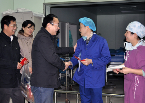 2月9日上午,农历除夕。院领导陈方平、吴希林、黄进华、黄飞舟、邓云龙,以及党办、院办、人力资源部、医务部、护理部等职能部门负责人,看望并慰问坚守在一线医护人员、行政后勤人员,代表医院党政向他们致以新年的祝福和新春的问候。
