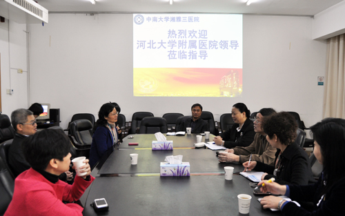 河北大学附属医院党委书记李自壮书记表示,此次医院考察团成员由医院管理骨干组成,目的就是来感受湘雅三医院护士岗位管理,学习湘雅三医院良好的人才队伍建设和信息化建设的管理经验,希望与湘雅三医院保持长久合作关系,相互交流学习,共同发展进步。