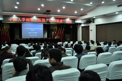 湖南省人感染H7N9禽流感救治专家组专家、湘雅三医院呼吸内科主任孙圣华教授结合《人感染H7N9禽流感诊疗方案(2013年第2版)》进行了深入的讲解。湘雅三医院住院医师、总住院、进修医师、研究生、病友等200余人参加了讲座。