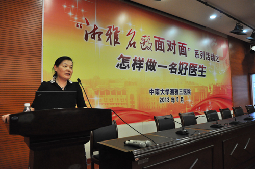 “当代湖南青年女杰”、“芙蓉百岗明星”、“三八”红旗手、妇科“女超人”、妇科微创“女侠”、“湘雅名医”......当这一连串称号集中在一个人身上时,我们自然而然想到了妇产科主任薛敏教授。5月22日晚,湘雅名医面对面系列活动迎来了第二位名医——薛敏教授,外科楼二楼学术报告厅座无虚席,医生、护士、研究生、住院医师等近200人来到现场,聆听薛教授的讲座。