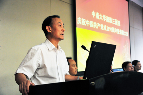 6月28下午,湘雅三医院庆祝建党92周年暨总结表彰会在外科大楼国际学术报告厅隆重举行。大会主题是回顾党的光辉历程和艰辛探索,以党的辉煌成就和伟大精神凝聚全院共产党员和全体职工的力量,以党的建设引领湘雅三医院科学发展,为实现“湘雅在全国进前三”的目标作出湘雅三医院应有的贡献。校党委常委、副校长田勇泉发表重要讲话,院党委书记罗爱静做主题报告,院长陈方平宣读表彰决定,院党委副书记吴希林主持会议。院领导袁洪、朱晒红、黄进华、黄飞舟、邓云龙、杨飞龙出席会议。