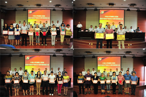 陈方平院长宣读了《关于表彰2012-2013年度先进党支部、先进党小组、优秀共产党员和优秀党务工作者的决定》。授予第三党支部等3个单位为先进党支部,儿科等9个党小组为先进党小组;蔡骞等36名同志为优秀共产党员,黄君英等9名同志为优秀党务工作者的荣誉称号,并予以表彰。此外,在中南大学“七一”表彰中我院获得以下荣誉:第二党支部荣获中南大学“先进党支部”称号;吴希林同志荣获中南大学“优秀党务工作者”称号;欧阳文同志荣获中南大学“优秀共产党员标兵”称号;陈方平等28名同志荣获中南大学“优秀共产党员”称号。
