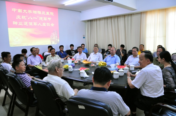 7月31日,医院在综合楼一会议室召开庆祝“八一”退伍军人座谈会,院领导罗爱静、陈方平、吴希林、朱晒红、黄进华、邓云龙与我院退伍、转业“老兵”“新兵” 一同庆祝中国人民解放军建军86周年并座谈。